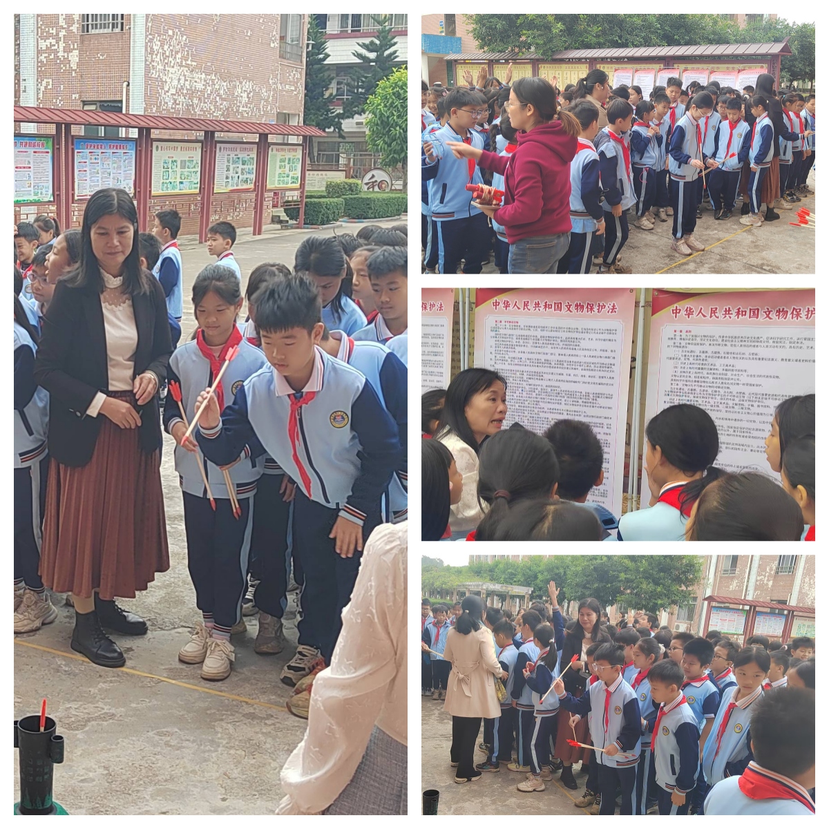 活動現(xiàn)場,工作人員向師生們細致地解讀嶺南傳統(tǒng)建筑的獨特藝術韻味,并深入闡述磨刀山遺址的深厚文化內涵與重要歷史意義,讓師生們直觀領略到嶺南建筑的匠心之美,全面了解“最早的廣東人”的起源脈絡。工作人員還以通俗易懂的語言普及《中華人民共和國文物保護法》知識,引導師生牢固樹立文物保護意識,主動投身文物保護實踐?;顒犹貏e設置了趣味互動環(huán)節(jié),讓師生們在輕松歡樂的氛圍中加深對文物保護知識的理解與記憶。
