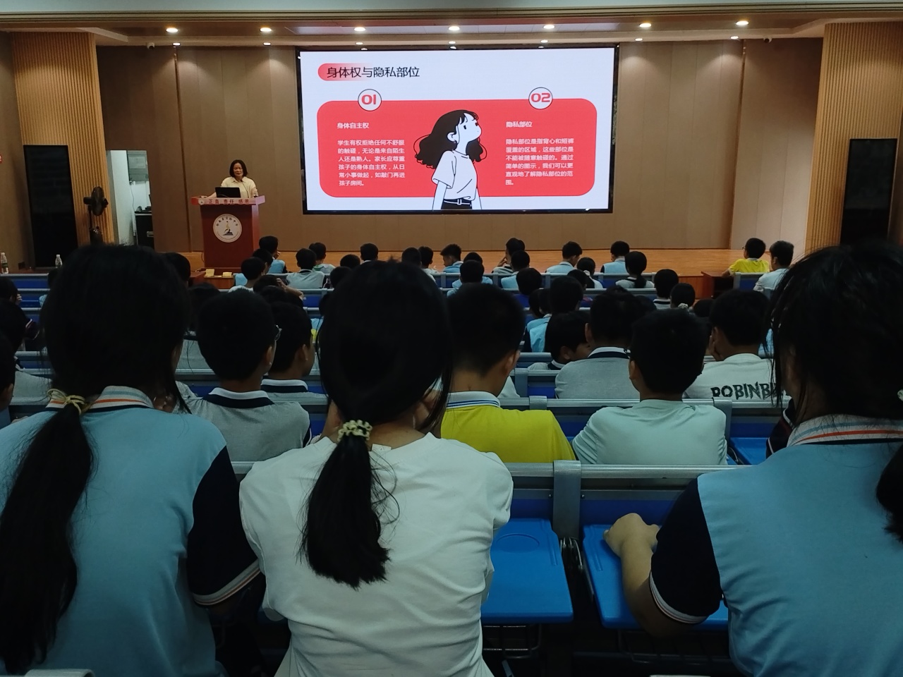 隨后,活動進入安全教育環(huán)節(jié)。陳主席為同學們帶來“青春護航,安全同行”主題講座。她圍繞防性侵、交通安全、網(wǎng)絡安全及防欺凌等重點內(nèi)容,通過情景模擬、知識問答等互動方式,生動講解各類安全風險的防范與應對措施,叮囑大家時刻保持警惕,增強自我保護意識和應急處置能力。